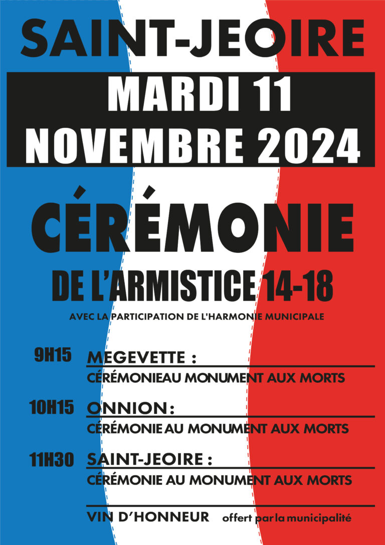 À l’occasion de cette commémoration, la municipalité de Saint-Jeoire invite l’ensemble des habitants à se réunir sur le parvis de la mairie, afin de rendre hommage aux femmes et aux hommes qui ont marqué notre histoire.